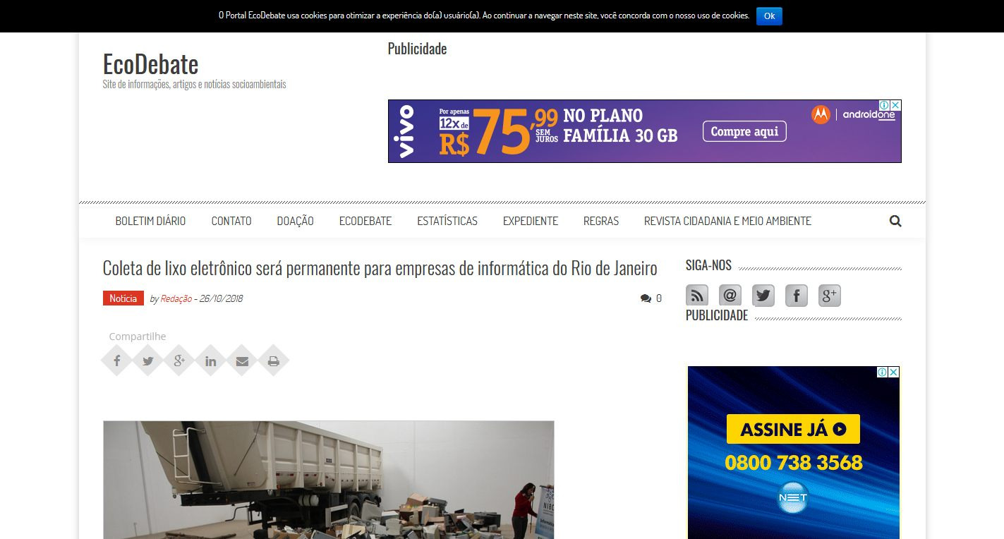 Fonte: Eco DebateLink: 26/10/2018Link: https://www.ecodebate.com.br/2018/10/26/coleta-de-lixo-eletronico-sera-permanente-para-empresas-de-informatica-do-rio-de-janeiro/