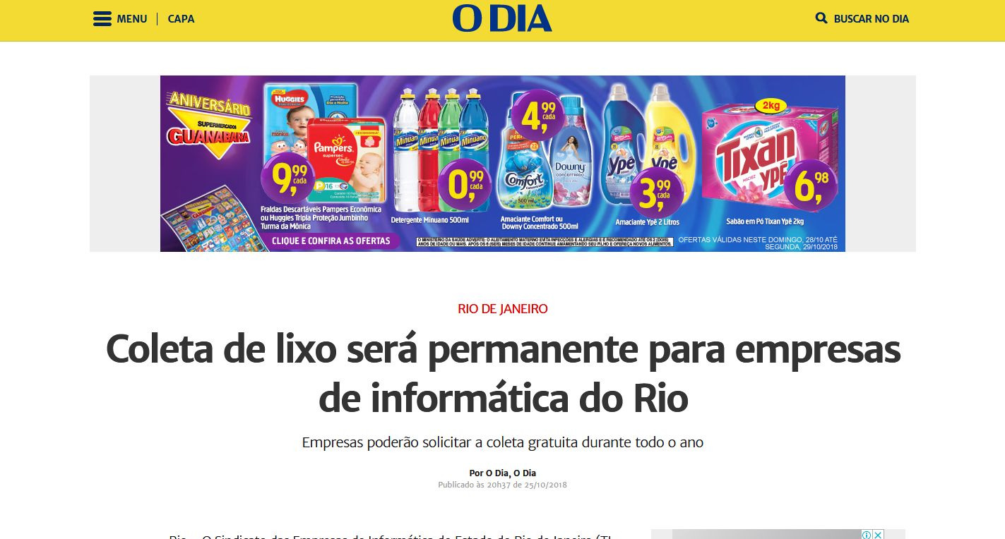 Fonte: O DiaData: 25/10/2018Link: https://odia.ig.com.br/rio-de-janeiro/2018/10/5586900-coleta-de-lixo-sera-permanente-para-empresas-de-informatica-do-rio.html